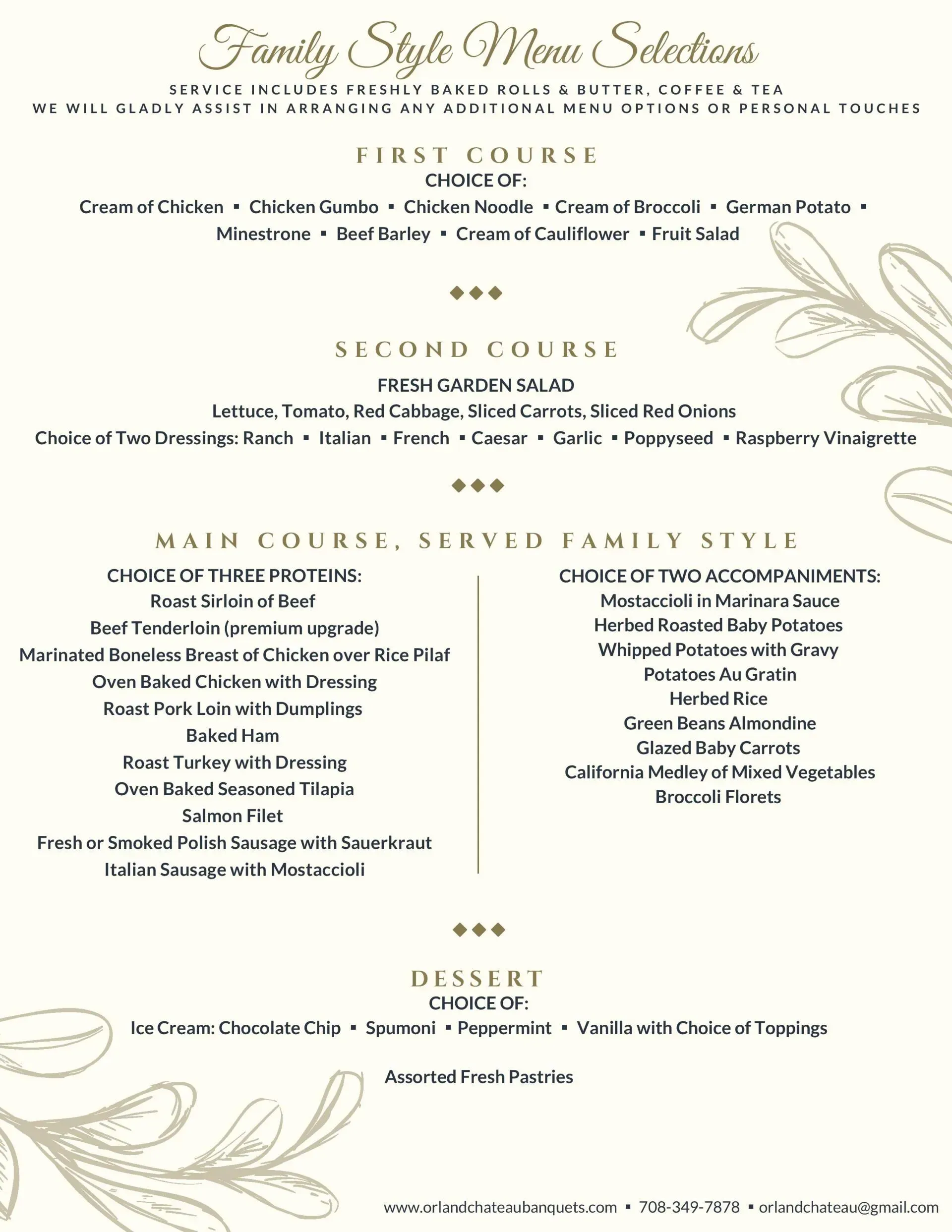 Whether you prefer plated service or a family-style experience, our team ensures every detail meets your expectations. With a broad and customizable menu selection, we offer a variety of options tailored to fit a range of budgets and events.